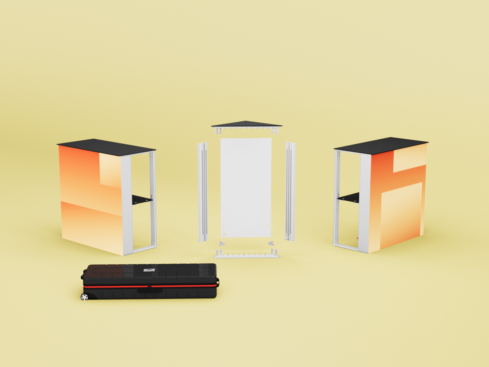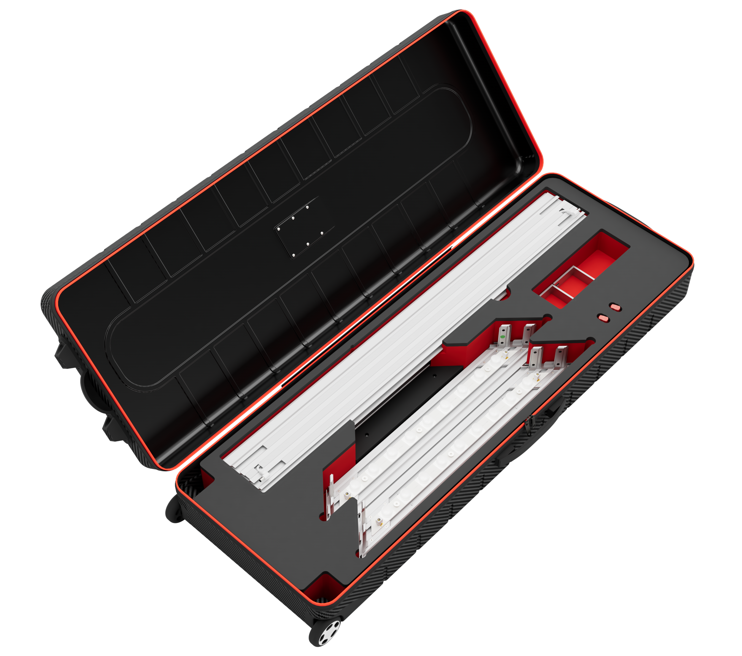 Alle Komponenten des Counter One Corner Kits werden sicher und kompakt in einem robusten ABS-Koffer (120 x 21 x 40 cm, 14 kg)) verpackt. Dieser sorgt nicht nur für maximalen Schutz während des Transports, sondern ermöglicht auch eine einfache und platzsparende Lagerung.