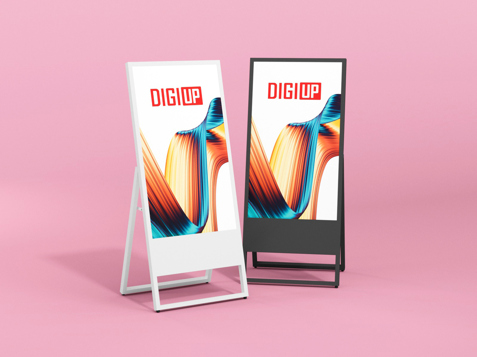 Der DIGIUP STAND ist ein digitaler Kundenstopper mit Full HD LCD Display und integriertem Media Player. Das Display spielt Videos, Animationen, Bilder und bei Bedarf auch Ton in einem kontinuierlichen Loop ab.