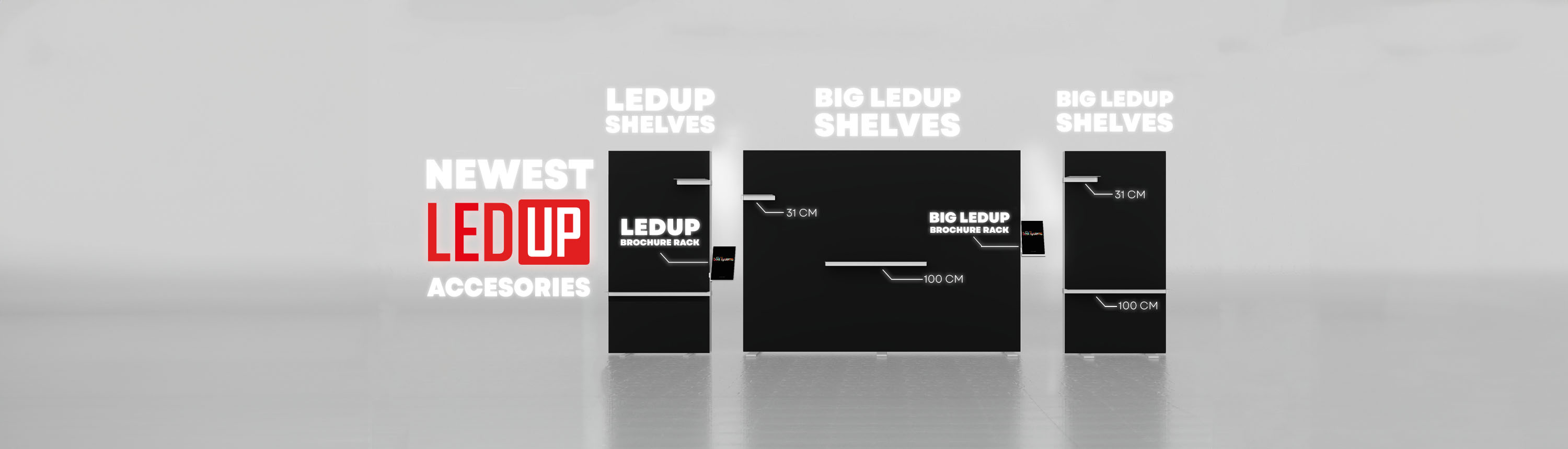 Transformiere deinen LEDUP® mit den innovativen LEDUP® Brochure & Shelf Zubehör.