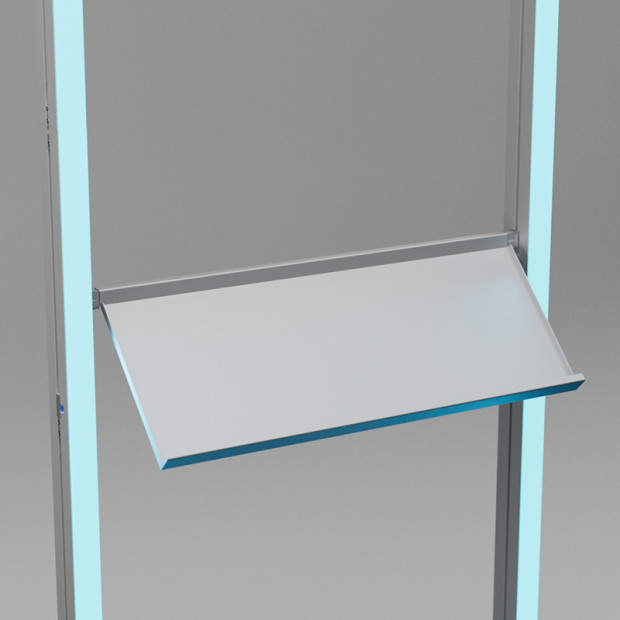 Wie alle LINEUP-Komponenten ist auch das Zubehör Ablage eine einfache, werkzeuglose Montage konzipiert. Es lässt sich über das modulare Stecksystem schnell und sicher an der bestehenden Rahmenstruktur befestigen – ganz ohne Werkzeug oder zusätzliches Equipment.