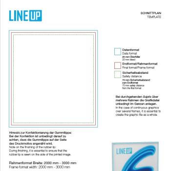 LINEUP ist in verschiedenen Standardgrößen verfügbar: Breiten von 200, 250 oder 300 cm sowie Höhen von 200, 250 oder 300 cm stehen zur Auswahl. Dank eines cleveren Modulsystems lassen sich mehrere LINEUP-Rahmen in verschiedenen Größen und Formen miteinander kombinieren. So entstehen individuelle Präsentationslösungen mit maximaler Flexibilität.