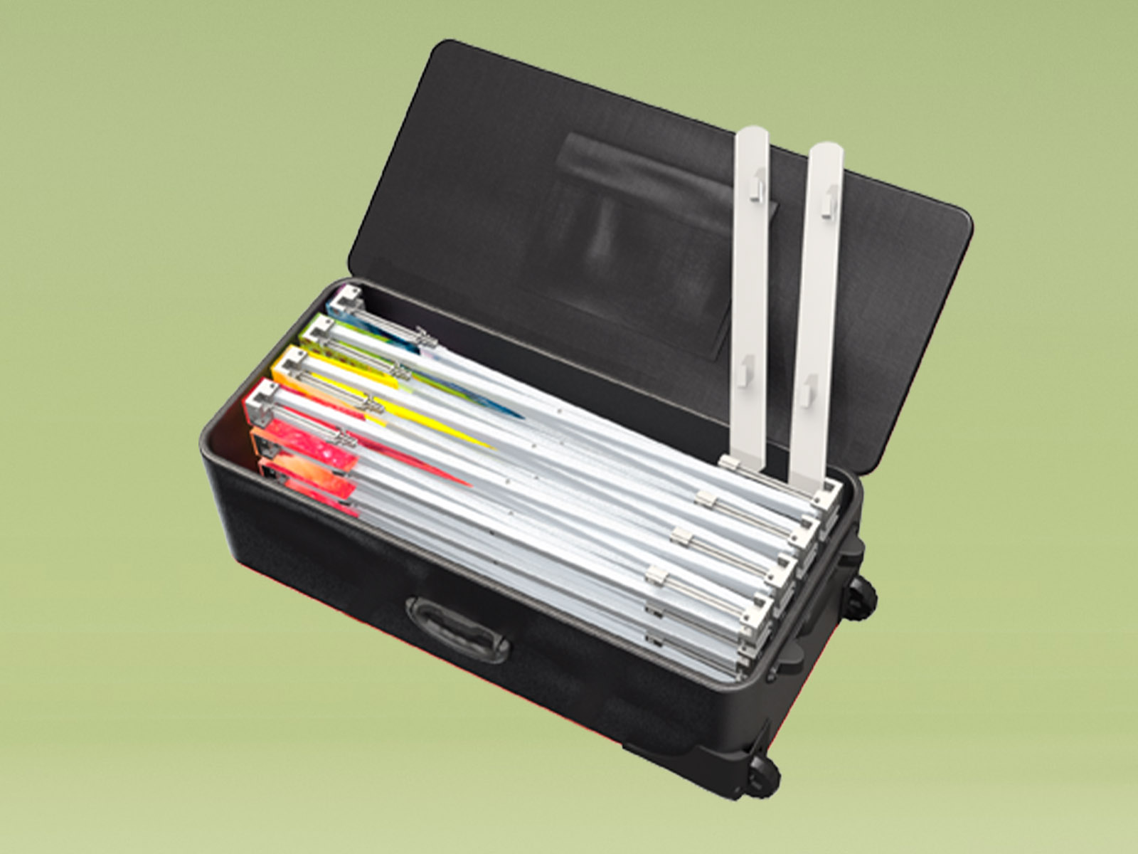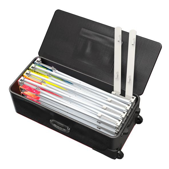 Soft Expo wird mit einem rollbaren Transportkoffer ( cm x cm x cm )geliefert, was den Transport erleichtert.