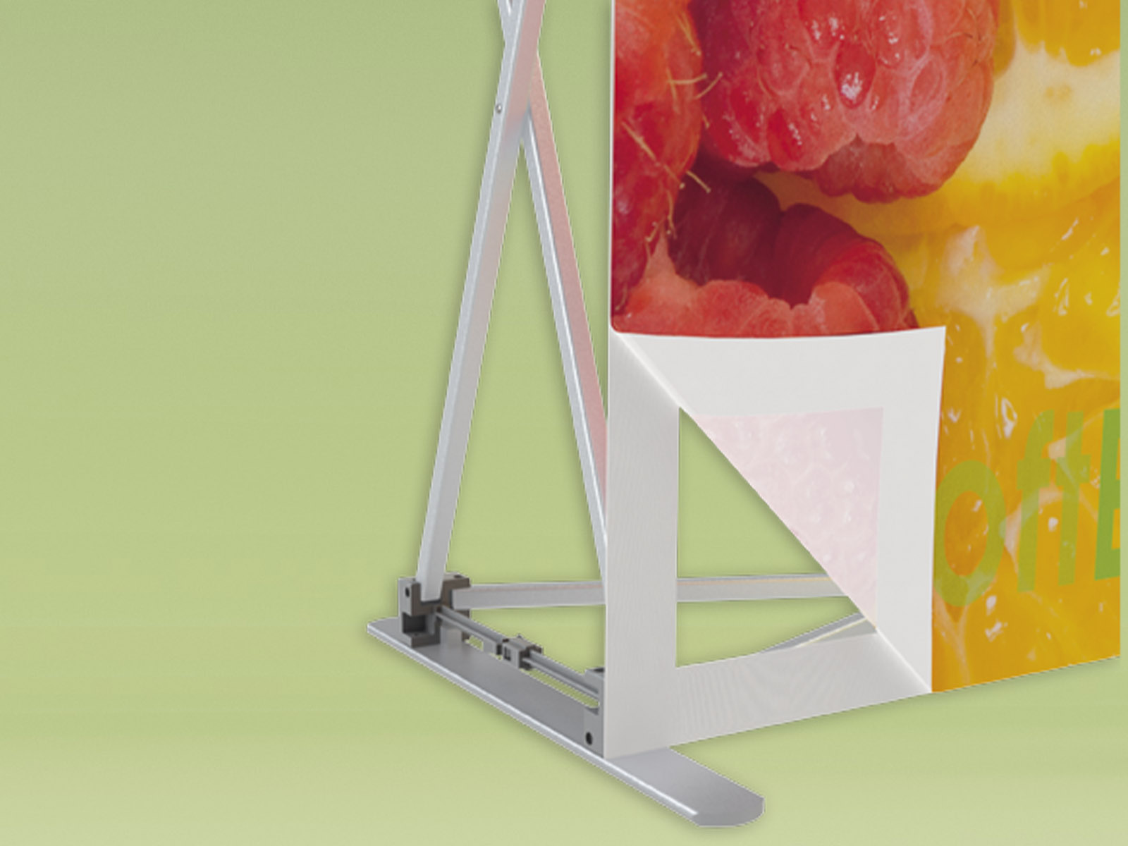 Mit dem Soft Expo2-System bleibt der Druck auch dann am System, wenn es zusammengefaltet wird.