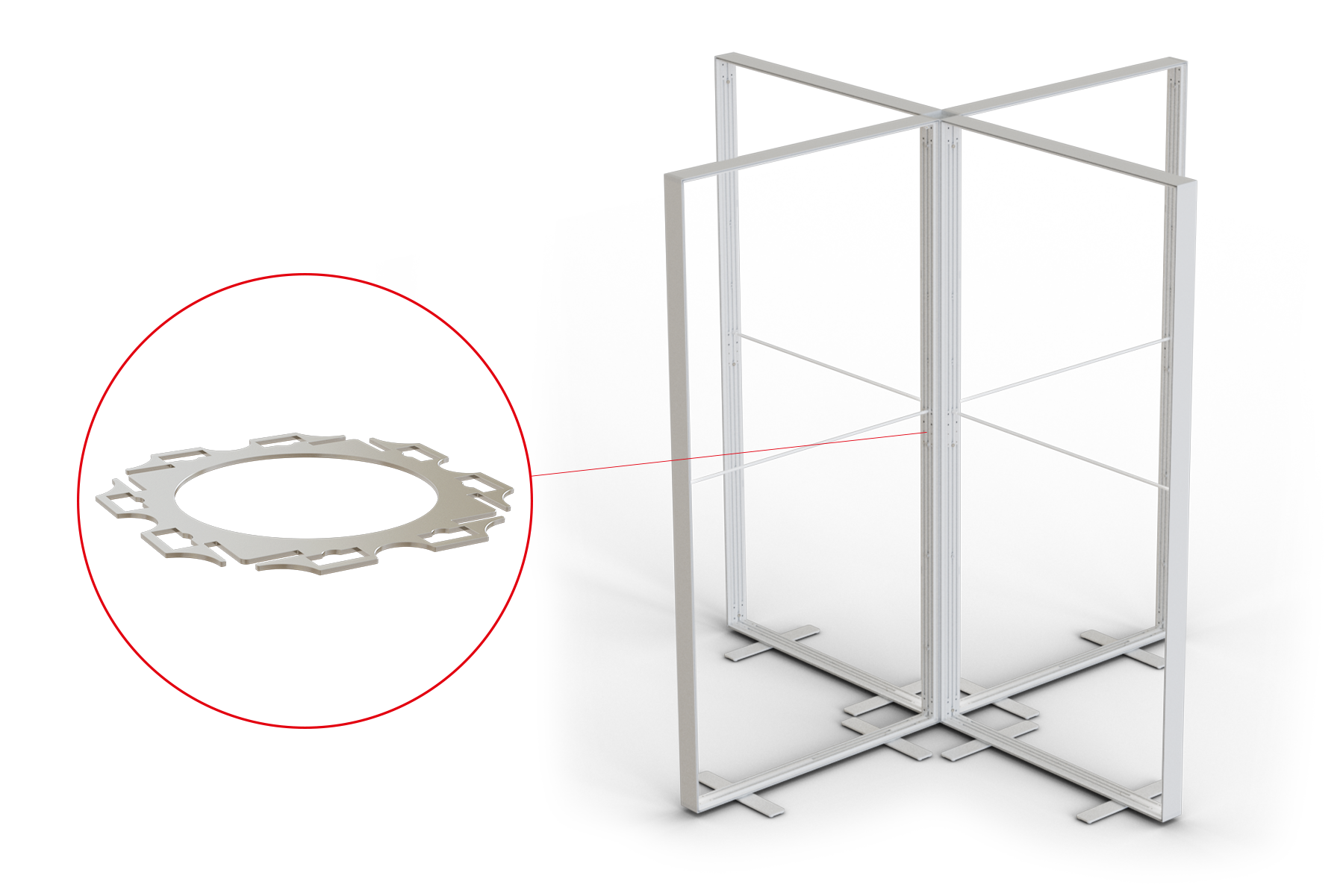 With the system connector, 90 degrees stable corner solutions can be created covering the left system.